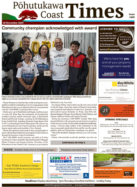 In this issue:- Community champion acknowledged with award- Coast community pitches in to raise funds for Hugo- Watercare wraps up record Hūnua planting season- Santa Claus is coming to town!- Support Local feature